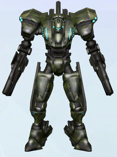 A bipedal humanoid mechanical monster with camouflage patterns. It has many hidden armaments for covert operations. It has never engaged in combat.