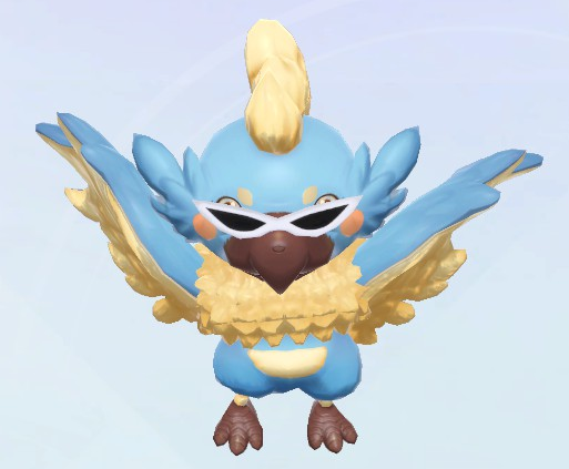 A Blue Chocobi wearing a mask. With its face hidden, its a bit bolder than before.