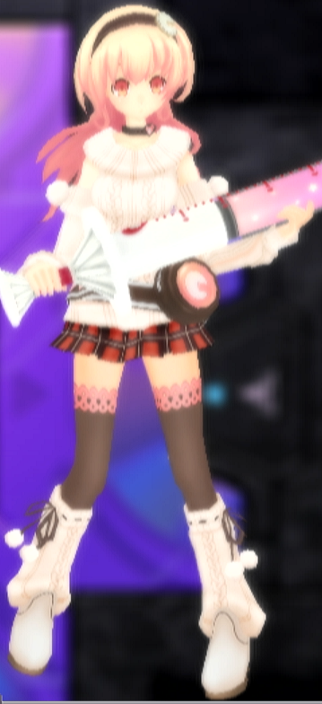 Screenshot of Compa wearing the Woven Heart on the Hyperdimension Neptunia equipment screen.