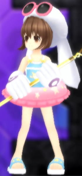 Screenshot of Gust wearing the Lovely Float on the Hyperdimension Neptunia equipment screen.