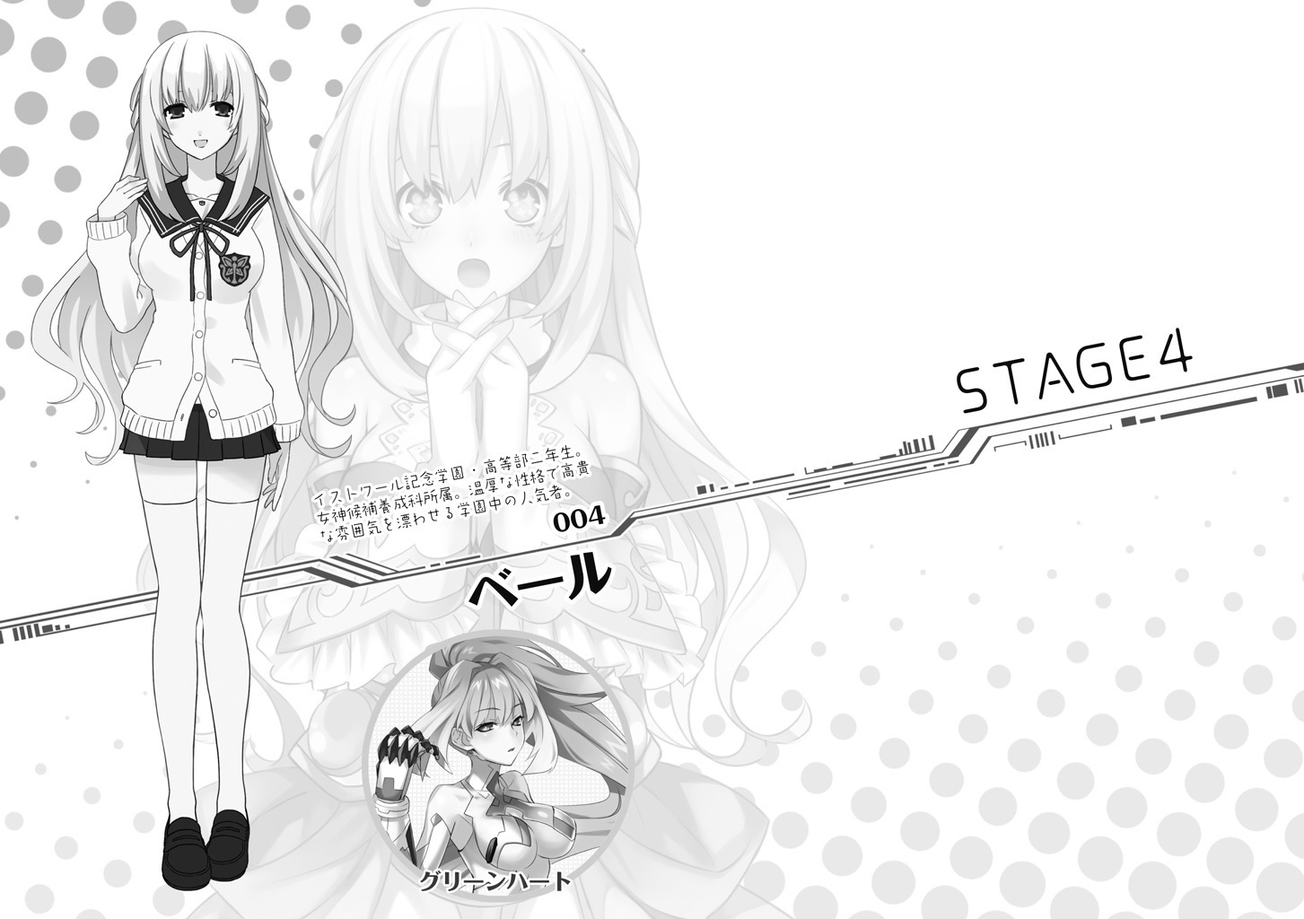 Double-spread page of Stage 4 featuring Vert. From Chou Jigen Game Neptune: High School