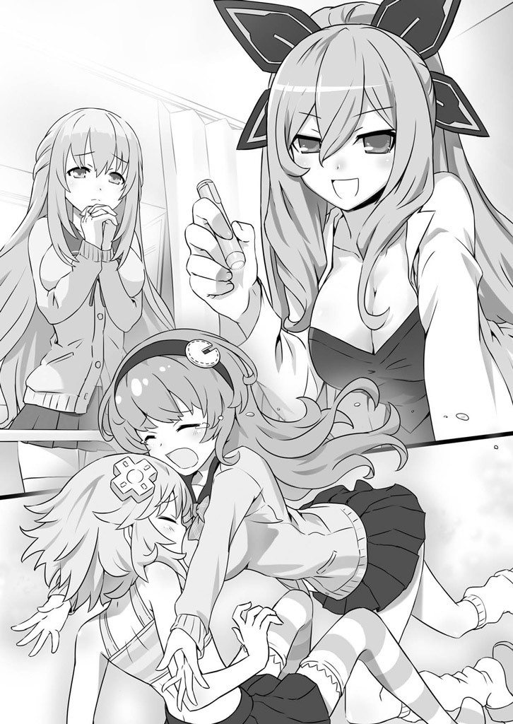 | current | 05:05, 26 April 2026 | 726 × 1,024 (686 KB) | RockAX (talk | contribs) | Neptune waking up at the school infirmary, being examined by Chika Hakozaki, after overworking herself, because she was mind controlled by Linda. From ''Chou Jigen Game Neptune: High School'' Category:Chou Jigen Game Neptune: High School scans Category:Neptune artwork Category:Vert artwork Category:Compa artwork Category:Chika Hakozaki |