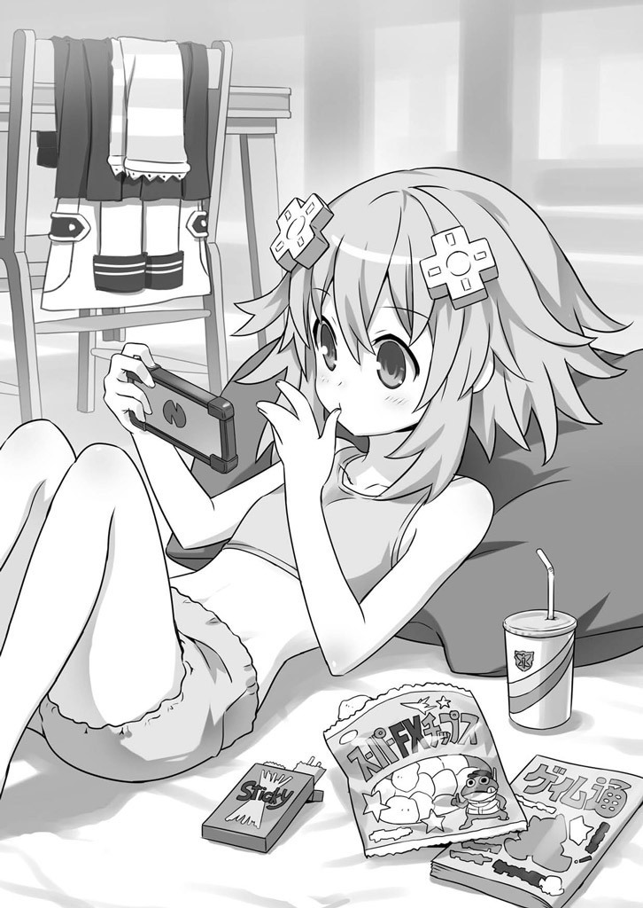 Neptune chilling in the old church, where they met the other dimension Histoire, repurposed as a secret base for the group. From Chou Jigen Game Neptune: High School
