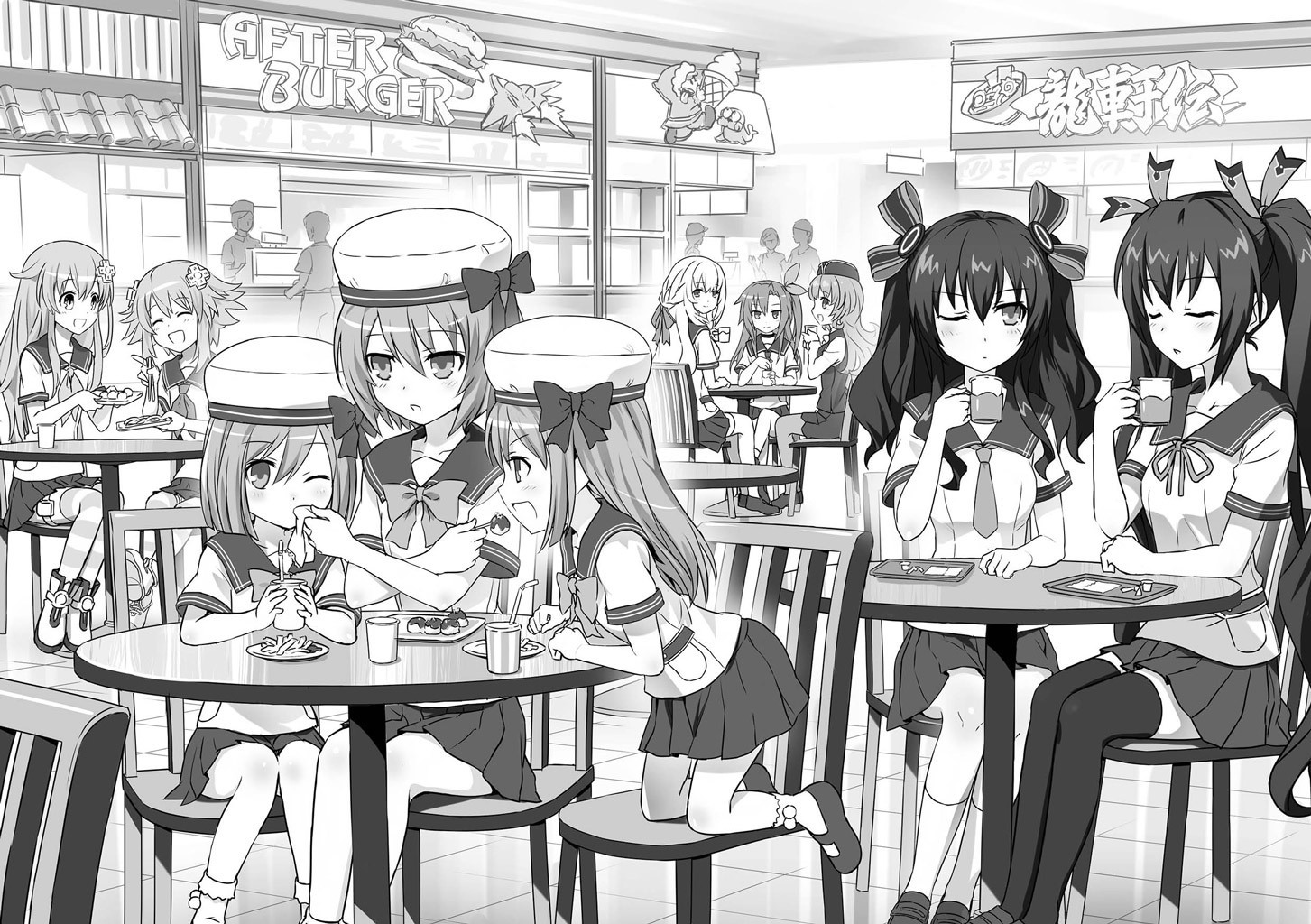 The main cast having lunch at 'Plané mall', after Neptune remembered she had takoyaki with Nepgear at this food court. From Chou Jigen Game Neptune: High School