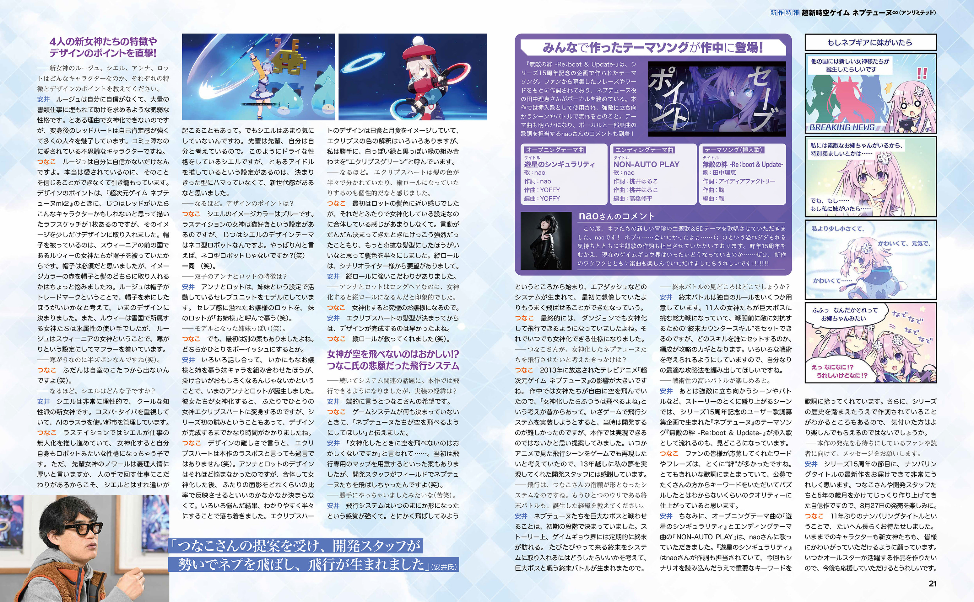 | current | 21:04, 22 April 2026 | 3,103 × 1,920 (8.05 MB) | RockAX (talk | contribs) | Second double-spread page of the developers interview from the Weekly Famitsu issue 1941. Category:Chou Shin Jikuu Game Neptune: Unlimited Weekly Famitsu |