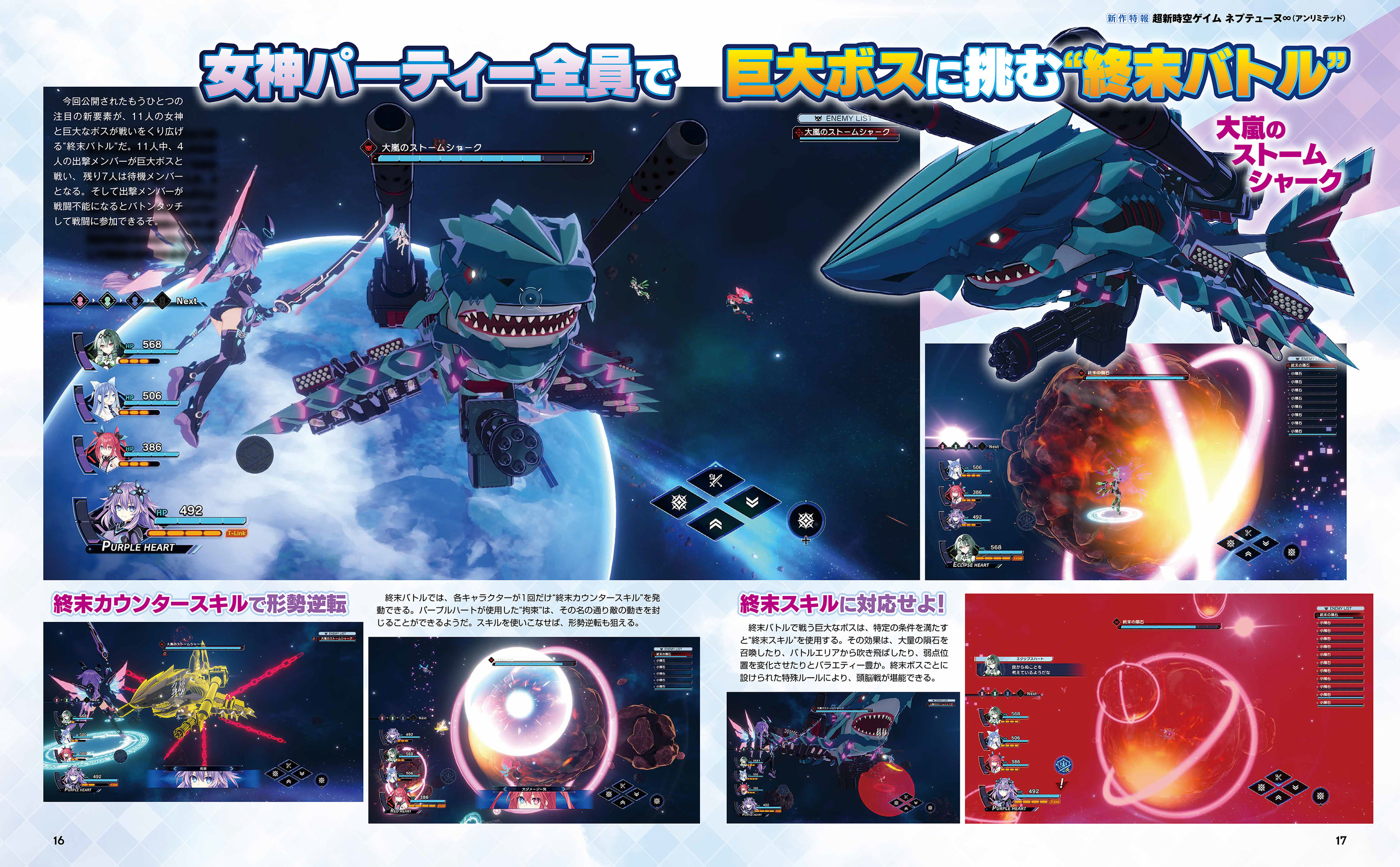 | current | 20:59, 22 April 2026 | 3,103 × 1,920 (7.43 MB) | RockAX (talk | contribs) | Double-spread page of the shark boss fight and the asteroid from the Weekly Famitsu issue 1941. Category:Chou Shin Jikuu Game Neptune: Unlimited Weekly Famitsu |