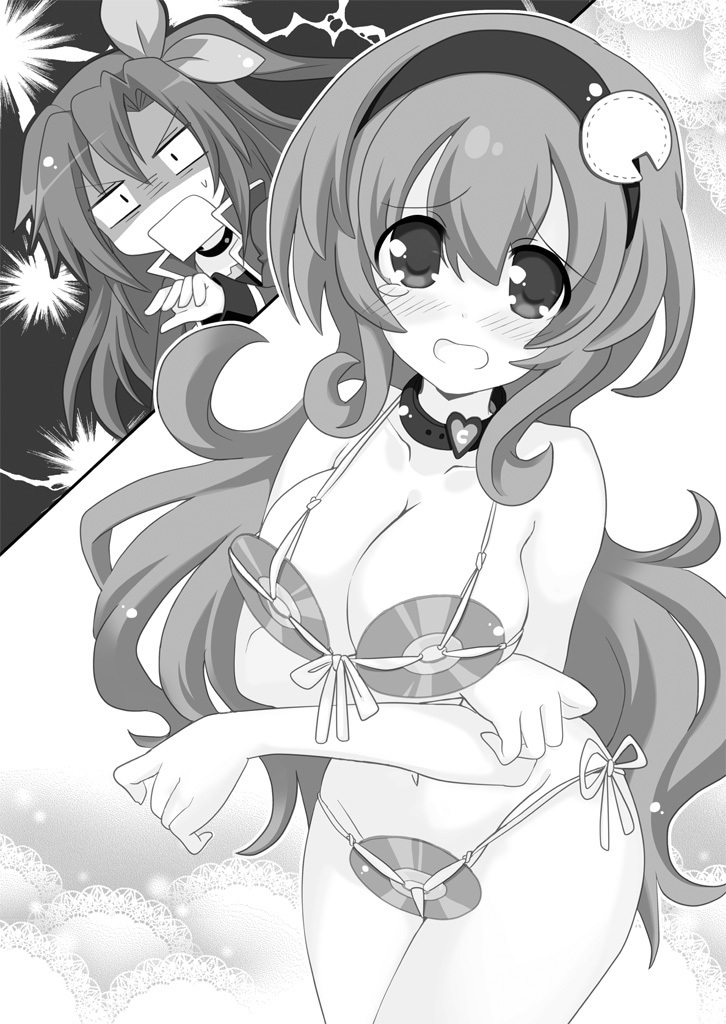 Illustration of Compa in a disc bikini, while IF looks shocked from the Hyperdimension Neptunia The Animation: TGS Honoo no Futsukakan novel.