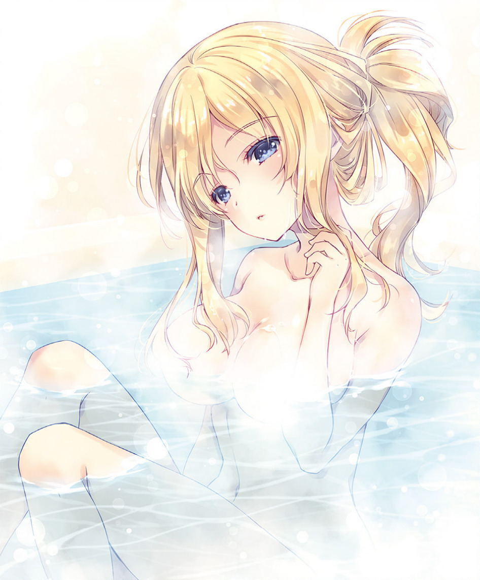 Illustration of Vert bathing in the Super Neptunia RPG: Yasashii Kioku Soushitsu no Naoshi-kata mini novel.