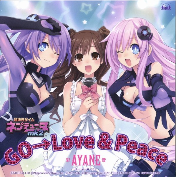 "GO→Love & Peace" is the ending song for Hyperdimension Neptunia mk2. It is the second track on the album Crest of Knights.