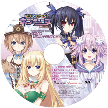 Megami-tachi ga Soine Shite Kure Chau CD is a Drama CD included in the Famitsu DX Pack of Hyperdimension Neptunia Re;Birth1 that depicts a day in a life of the goddesses sleeping with the listener.
